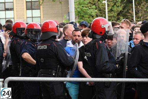Seis arrestos tras disturbios en el encuentro Athletic Club-Rangers en Bilbao.